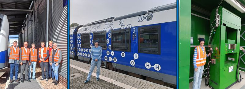 Sally had a fantastic visit to see Christoph Grimm and Christoph Nagel of Eisenbahnen und Verkehrsbetriebe Elbe-Weser GmbH (evb) and Oliver Mairinger of Alstom in September with Jose Bellosta von Colbe (Helmholtz-Zentrum Hereon), to discuss their hydrogen fuel cell passenger trains which have been successfully operating out of Bremervörde, Germany, on non-electrified lines, alongside the remaining diesel trains, for many years now. Sally rode on a normal train service to Bremervörde, which happened be a H2 train (50:50 chance of this!) and was given a tour of their new workshop and the hydrogen refuelling site - most impressive!