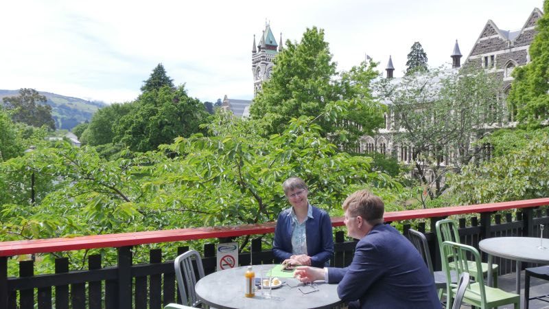 NZ joined Horizon Europe nearly 2 years ago, with a pleasing number of successful EU-NZ team bids funded to date. Neihana Waitai and Hugo Bussell of MBIE (Ministry of Business, Innovation and Employment) hosted an informative Horizon Europe Roadshow in Dunedin where Sally met up again recently with EU Ambassador for Horizon Europe, Lawrence Meredith. There was discussion around our aligned views on NZ's amazing natural resources for growing renewable electricity generation and storage, with the associated benefits of energy resilience and independence, plus the incredible economic opportunities this represents for NZ, and how to best collaborate on facilitating this transition. Sally also popped over to the Chemistry Department, where Dave Warren and Alex Haack demonstrated green hydrogen production from water using one of our mini-electrolyser kits (we = He Honoka Hauwai | the German-NZ Green Hydrogen Centre have sets of these for schools’ outreach and public engagement), then the fuel cell turning it back into electricity to spin a fan, or propel a mini-car, with the only emission being water. Thanks to Lucy Ross (another amazing University of Otago alumnus!) and to Lewis Mitchell for the photos!