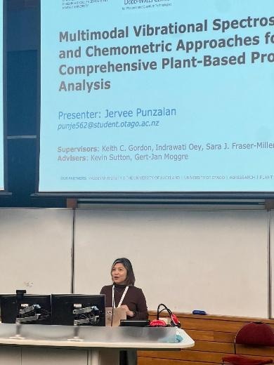 Jervee’s talk on “Spectroscopy for plant-based protein analysis” was based on her publications this year, including Food Chemistry 2025, 473, 143062. and Journal of Raman Spectroscopy, 2025; 56:788–800. Jervee also won a speakers prize at the symposium!