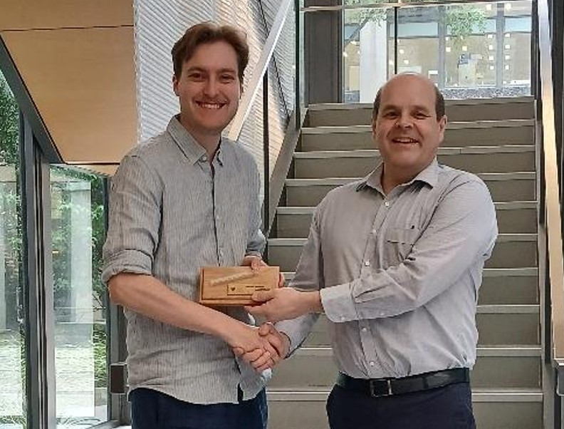 Mitchell’s paper on calcifications buried in wax tissue phantom was awarded the inaugural Peter Griffiths Best Paper Award for Applied Spectroscopy Practica. Peter Griffiths was one of the innovators of FTIR spectrometers – it is a real honour to be bestowed an award named after him. You can find the paper here: M. C. Chalmers, T. Tomberg, K. C. Gordon, S. J. Fraser-Miller, Discriminating Model Microcalcifications Immersed and Under Varying Depths of Wax Using Deep Low-Frequency Raman Spectroscopy, Applied Spectroscopy Practica 2 (2024) 1 – 12.